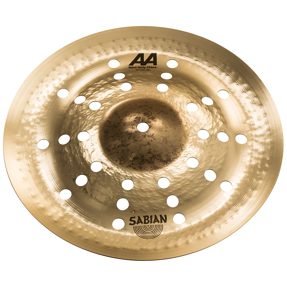 Sabian AA Mini Holy China 12" - miniaturowa wersja popularnych i lubianych talerzy efektowych Sabian Holy China. Posiada 10 rzędów po 3 otwory, podwyższony profil, surowy bell oraz szerokie zagięcie - dzięki temu jest ekstremalnie głośnia, cięta i przeszywająca.