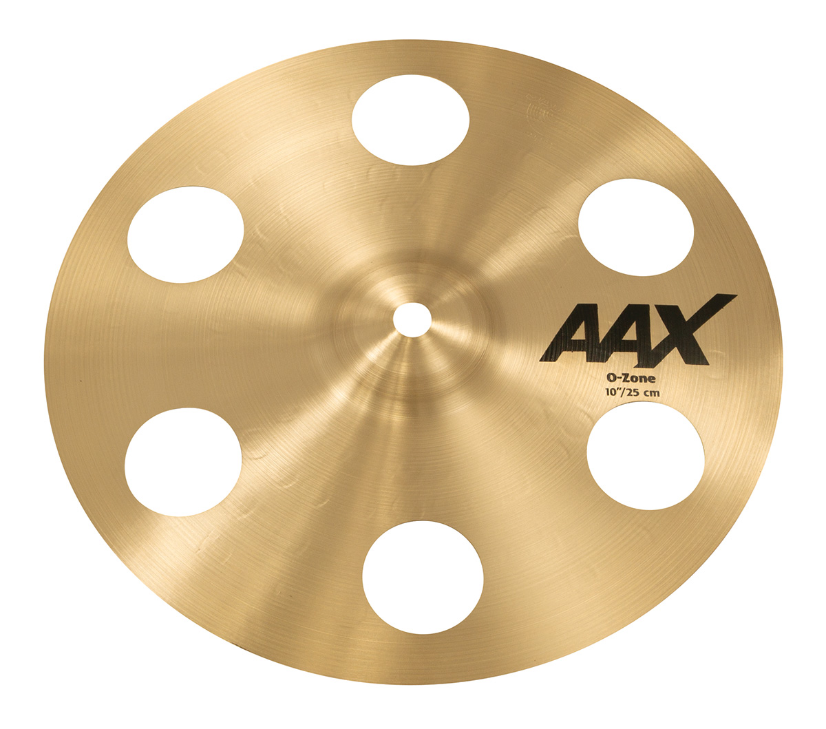 Talerz Sabian AAX O-zone Splash 10 to efektowy talerz z otworami na powierzchni. Brzmienie jest dość suche i szybkie. Przypomina w swoim charakterze połączenie splasha i małej chiny.