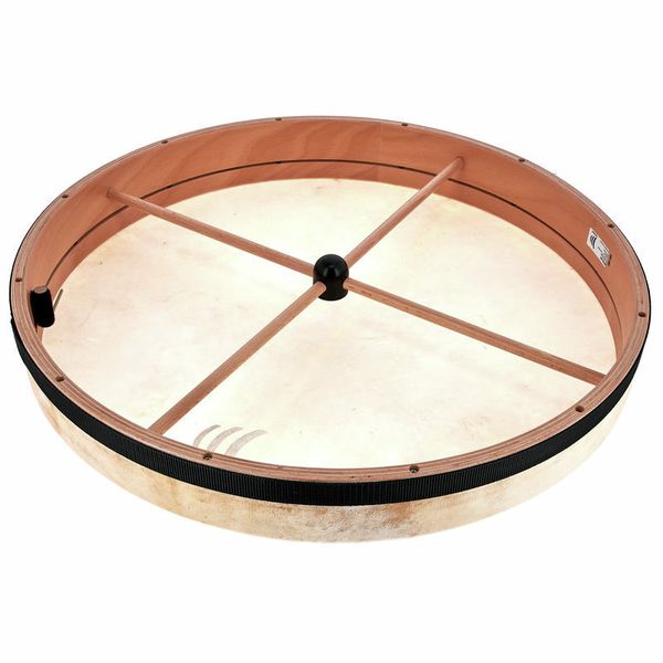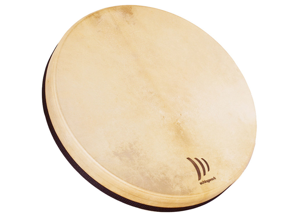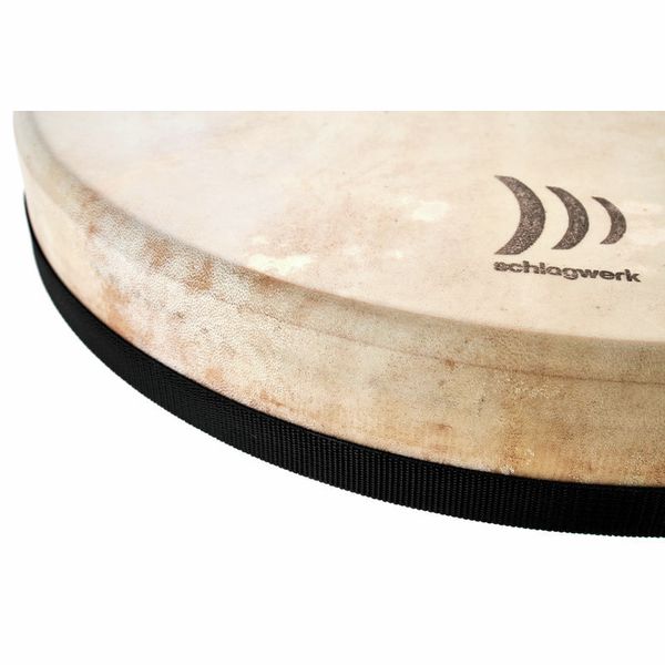 Schlagwerk Frame Drum RTS61 - duży bęben ramowy o średnicy 24" wyposażony w naciąg z selekcjonowanej skóry koziej. Naciąg można stroić za pomocą śruby zintegrowanej z ramą. Model wyposażony w krzyżak spełniajacy zadanie uchwytu.