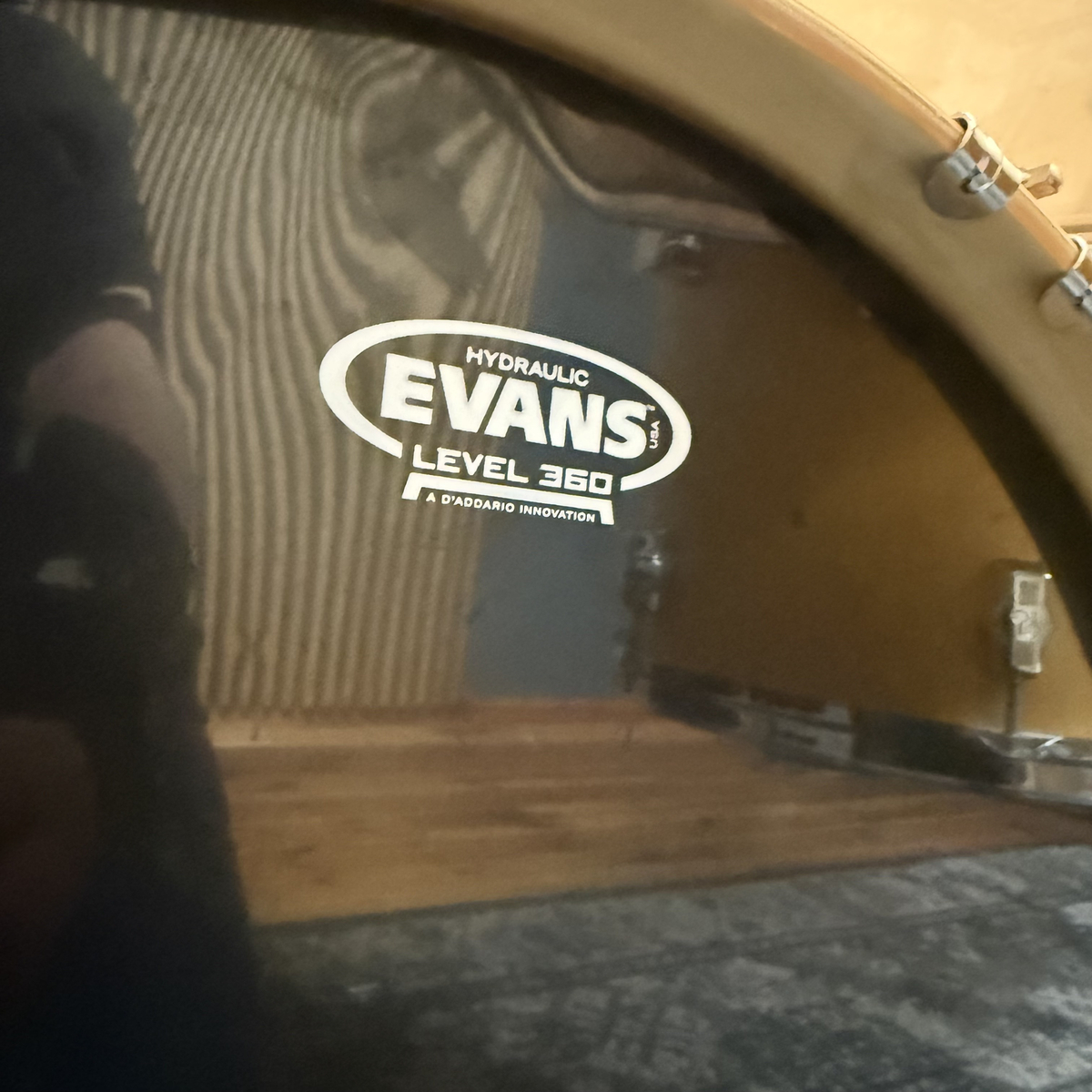 Na perkusji znajdują się profesjonalne membrany Aquarian na tomach, Evans na reso tomów oraz czarny Evans Hydraulic na bębnie basowym.
