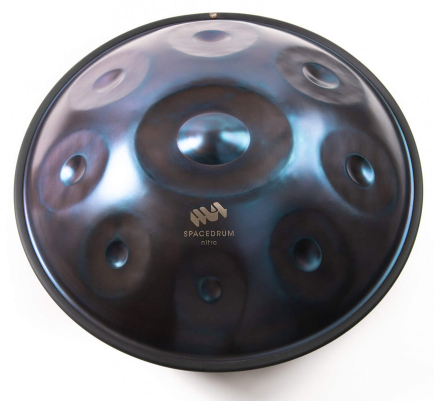 Spacedrum Handpan Nitro 9 D-Moll - 9-tonowy handpan wykonany z azotowanej stali. Najwyższej jakości instrument o zbalansowanym brzmieniu i szerokim zakresie dynamiki. Handpan (zwany też hangdrumem lub pantam) to instrument melodyczny, który swą popularność zawdzięcza przyjemnemu i łagodnemu brzmieniu. Co ważne mogą na nim grać osoby, które mają z nim styczność po raz pierwszy i od razu cieszyć się możliwościami jakie daje instrument. Nie jest potrzebna zaawansowana wiedza muzyczna by w sposób intuicyjny tworzyć piękne melodie. Instrument odpowiedni zarówno dla początkujących jak i zawansowanych graczy.