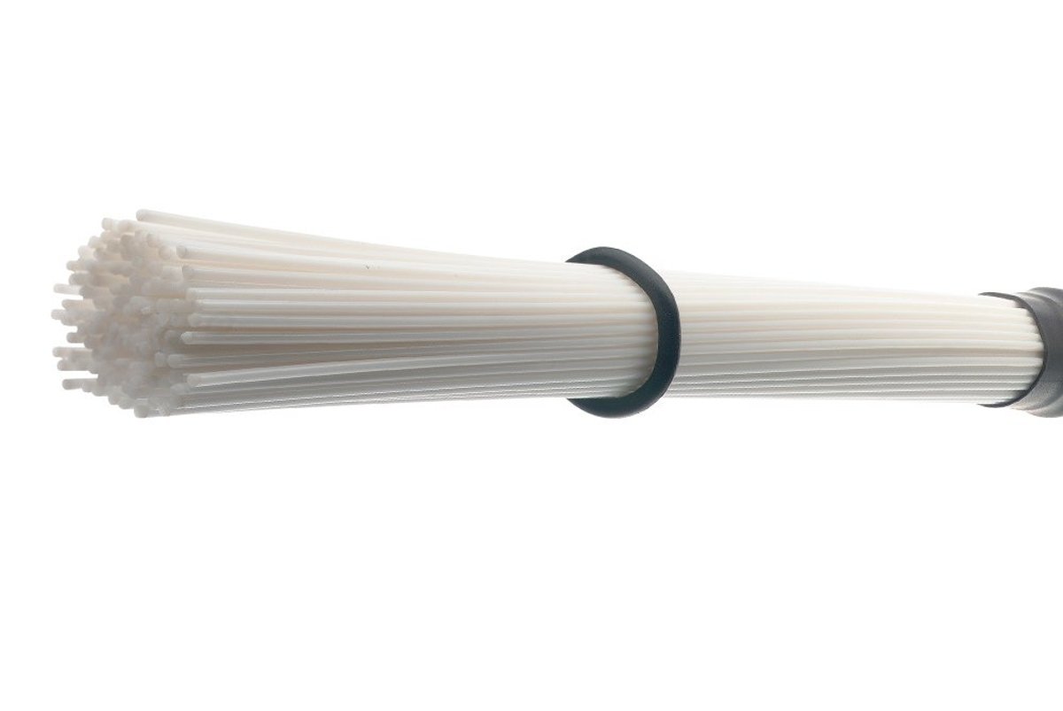 Nylonowe rózgi perkusyjne (hot rods) z drewnianym uchwytem i gumowym pierścieniem do regulacji szerokości.