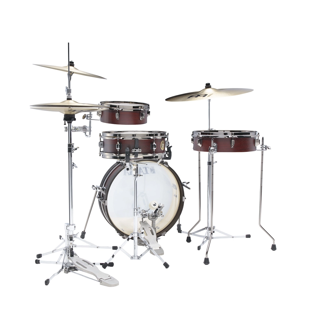 Bębny mają wyjątkowo płytką konstrukcję – tom i floor tom mają zaledwie 3,5 cala głębokości, werbel 4 cale, a wszystkie elementy, łącznie z bębnem basowym, mieszczą się w jednej torbie. Brak dolnych naciągów w tomach przekłada się na ciepłe, zdefiniowane brzmienie z wyraźnym atakiem. 12-calowy werbel zapewnia jasny, selektywny ton, a 18-calowy bass drum zaskakuje solidnym punchem i krótkim wybrzmiewaniem.
