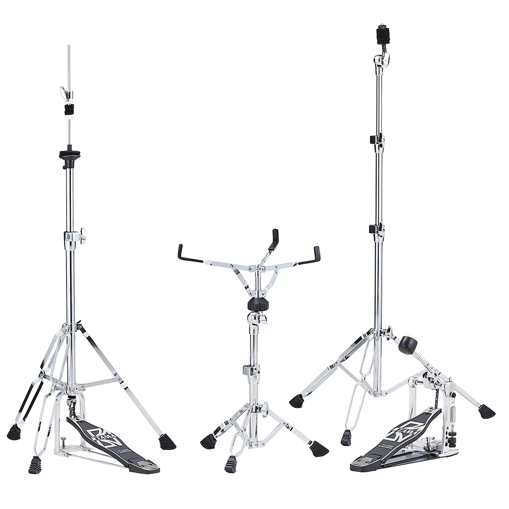 Kompletny, 4-elementowy pakiet hardware’u do zestawu perkusyjnego, zaprojektowany jako stabilna i bezproblemowa „baza” do codziennego grania. W zestawie otrzymujesz pojedynczy pedał stopy HP30P (na płycie stabilizującej), statyw hi-hat HH03W, prosty statyw talerzowy HC03W oraz statyw werbla HS03W. Wszystkie statywy mają podwójnie usztywnione nogi (double-braced) i klasyczne motylki, co zapewnia pewne trzymanie ustawień, szybkie rozstawienie i trwałość w trasie, na próbie i w szkole.