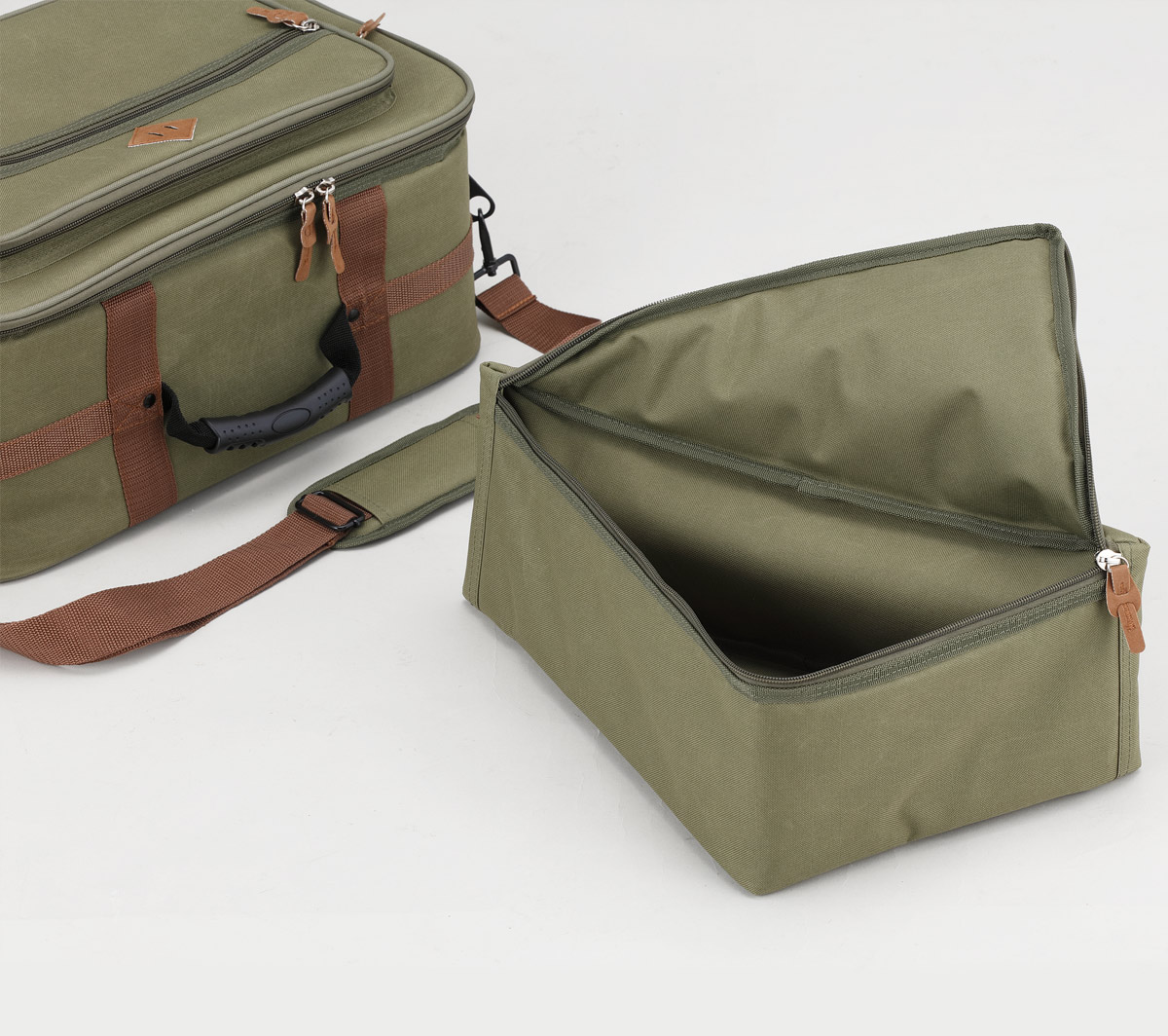 W pokrowcu znajduje się przegroda izolująca obie stopy od siebie, na klapie znajduje się miejsce na przegub zapinane na suwak. Po zewnętrznej stronie zamykana na zamek kieszonka do przechowywania drobiazgów. Dodatkowo w środku znajduje się torba na pojedynczą stopę