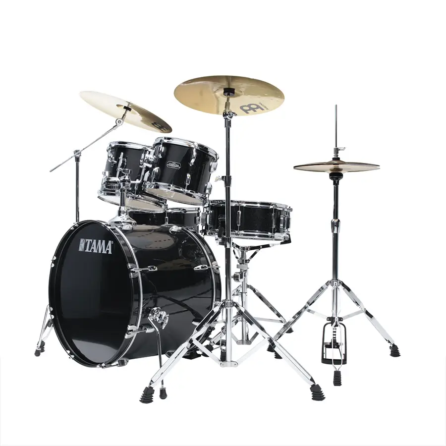 ST52H6-BNS to kompletny zestaw perkusyjny typu „odpalasz i grasz” – TAMA Stagestar Drum Set 5 pcs z centralą 22" w wykończeniu Black Night Sparkle, do tego chromowany hardware oraz w komplecie talerze MEINL BCS Cymbal Set. Jeśli szukasz pełnego startu (albo sensownej perkusji do sali prób), ten pakiet ma dokładnie to, czego potrzeba, żeby wejść w granie bez polowania na brakujące elementy.