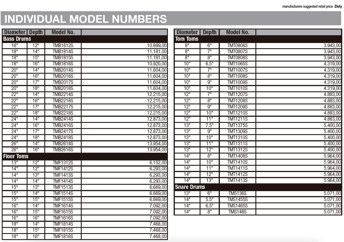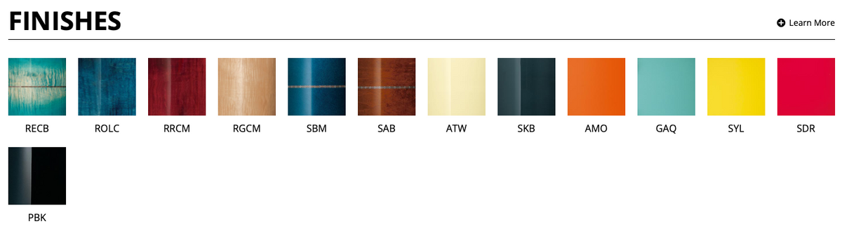 Jak przystało na topowy model Tama w swojej ofercie posiada wiele możliwych kolorów wykończeń, niektóre z nich dostępne jedynie dla wersji Maple: