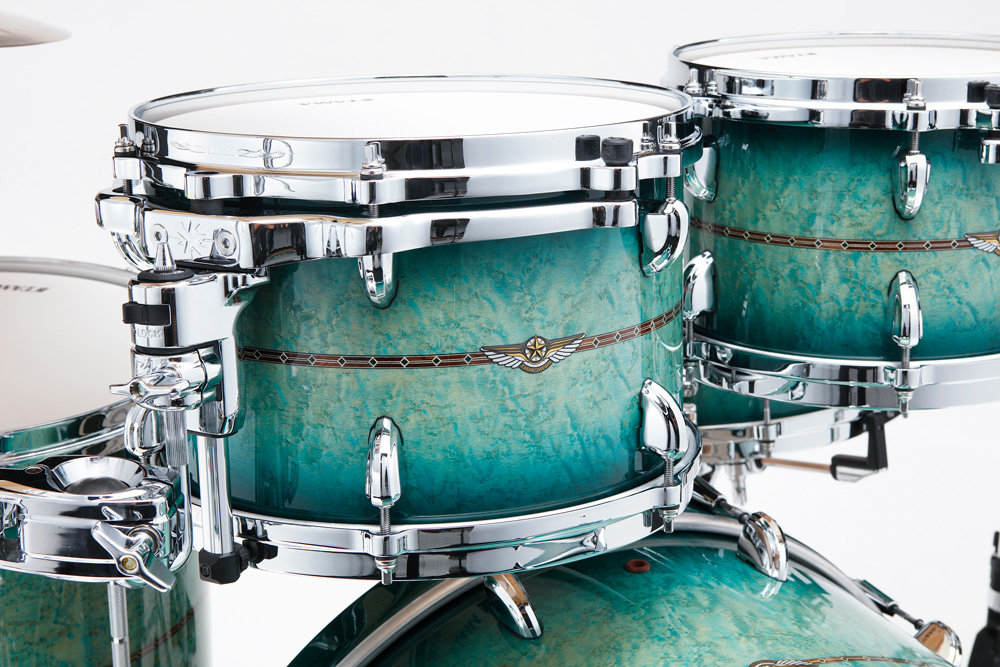 Bębny mają w opcji atrakcyjne inkrustacje, wcześniej widziane w serii Starclassic Bubinga. Istnieją trzy opcje - standardowa to inkrustacja wokół obwodu każdego bębna. Ale można również mieć inkrustację wewnątrz, wokół pierścieni Sound Focus. Lub po prostu nie mieć żadnej inkrustacji. Inkrustacja, swoją drogą, zawiera logo z gwiazdą. Żadne metalowe odznaki nie tłumią rezonansu tych bębnów - nawet otwory powietrzne są wykonane z drewnianych podkładek, a nie z metalu.