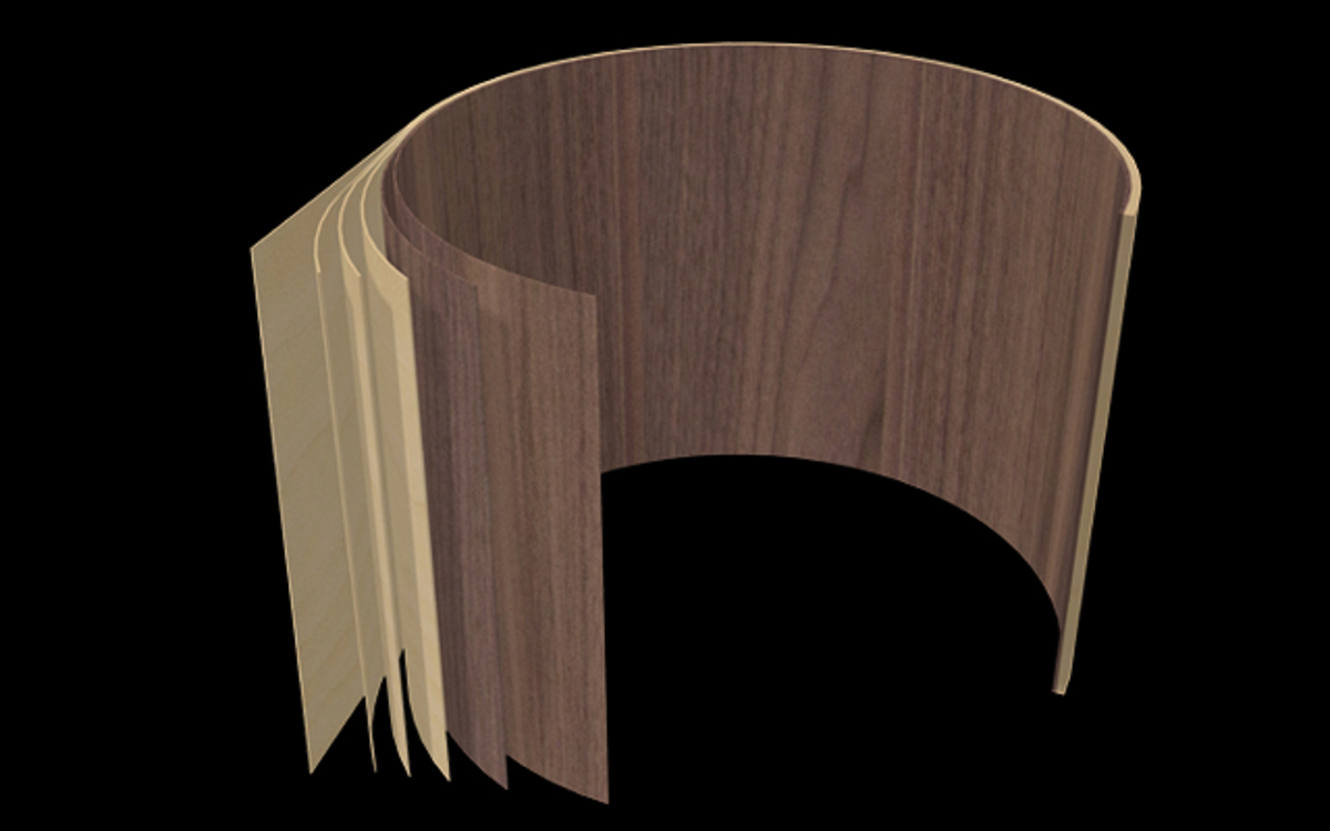 Korpusy bębnów basowych o grubości 8 mm - 5 warstw brzozy + 2 warstwy orzecha (American Black Walnut).
