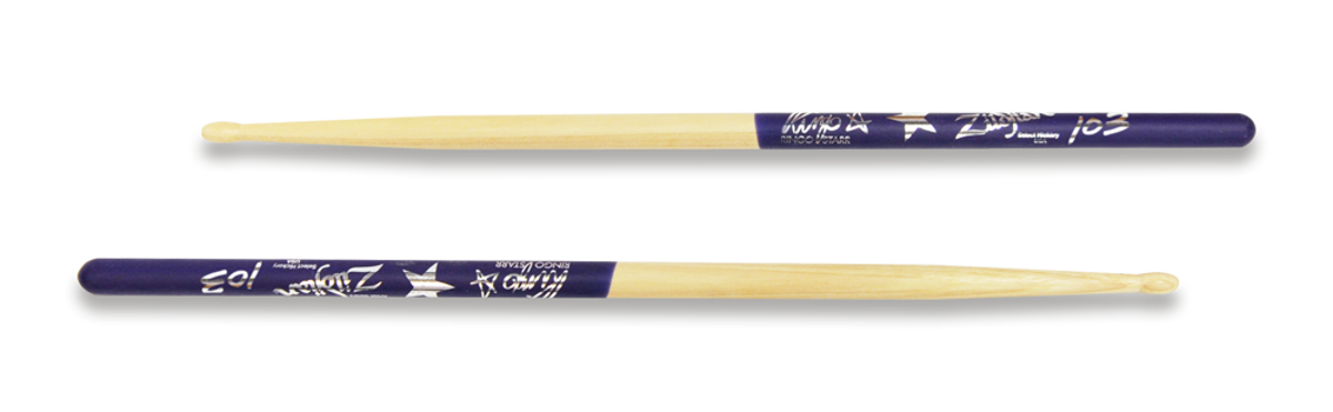 Pałki Zildjian sygnatura Ringo Starr - model zaprojektowany przy współpracy z legendarnym perkusistą The Beatles. Wszechstronny model z hickory o wymiarach 5A, ale z wydłużoną główką i powłoką antypoślizgową DIP w kolorze fioletowym. Nadruk z logo Zildjian i autografem artysty w kolorze srebrnym.